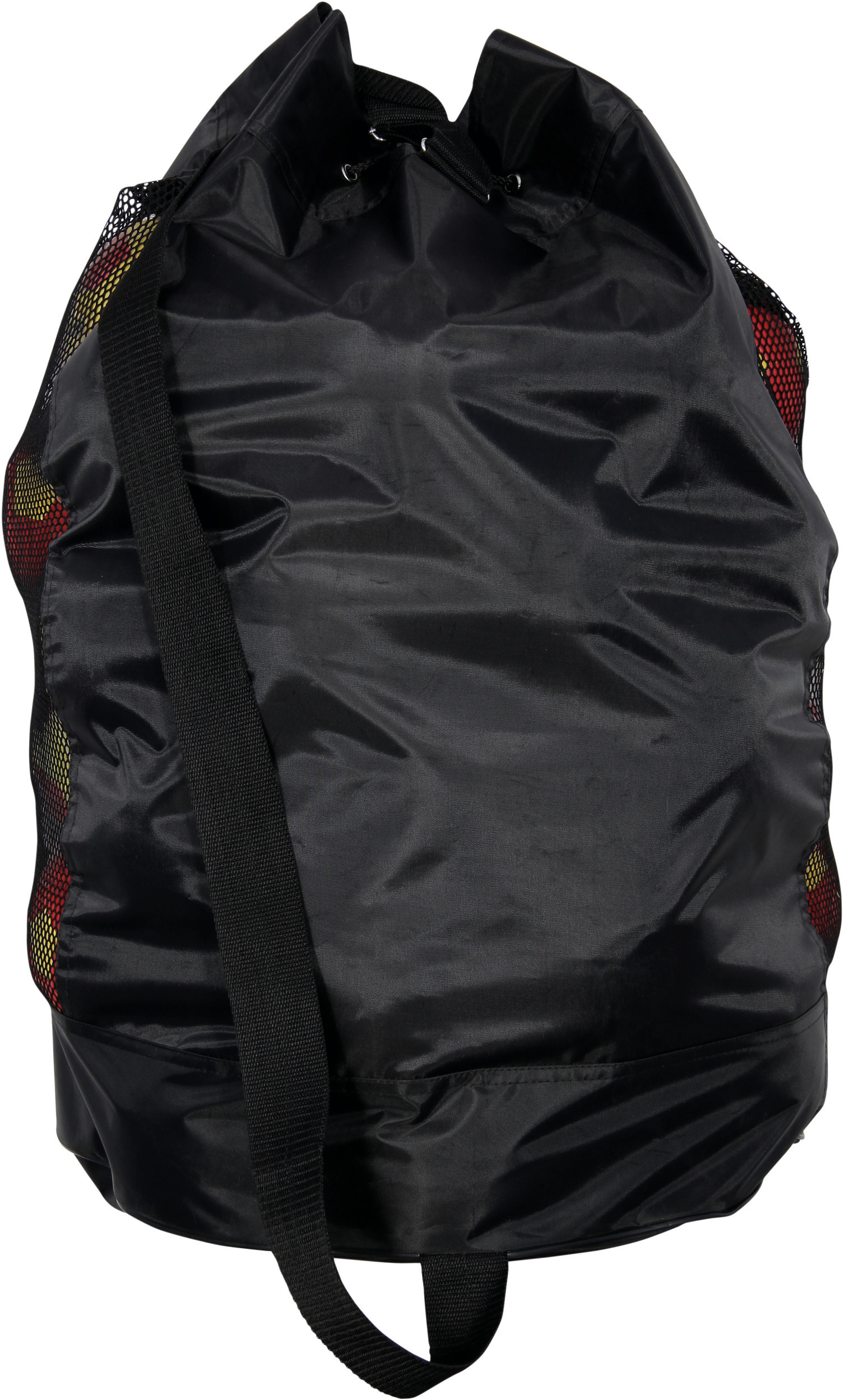 100 % Polyester. Material-Mix aus strukturiertem Mesh für ein rasches Trocknen der Bälle und PVC-beschichtetem Polyester. Größenverstellbarer Schulterriemen aus Polypropylen und Kordelzug oben am Beutel. Lochgewebe lässt die Bälle schnell trocknen. Verstellbarer Schulterriemen.