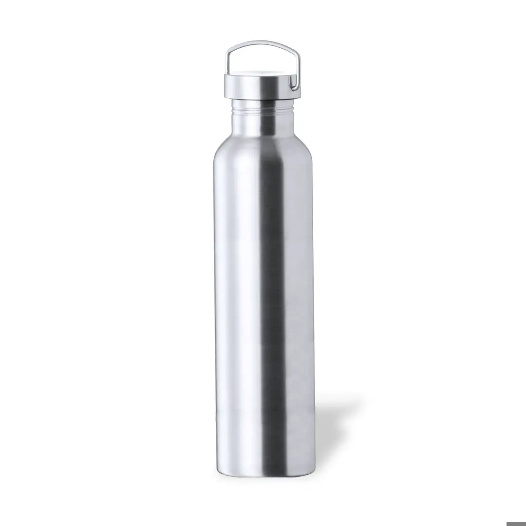 Bidón jumbo de 1,5 l de capacidad, fabricado en acero inox de acabado brillo. Con original tapón a rosca en acero inox, a juego y con asa integrada. Libre de BPA y presentado en caja individual de diseño kraft.
