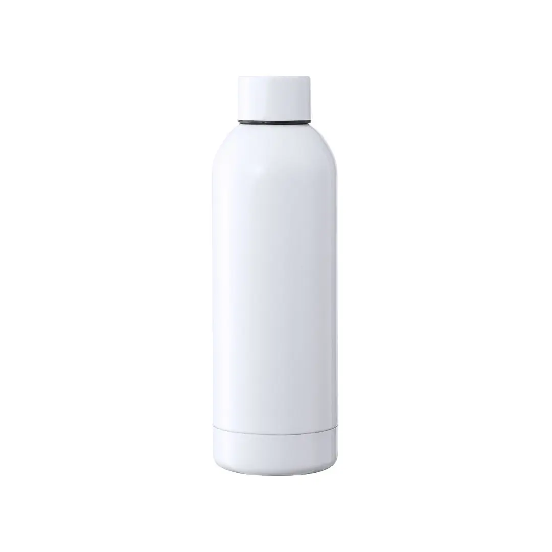 Bidón térmico de 500 ml de capacidad, fabricado en acero inox de doble pared y especialmente diseñado para marcaje en sublimación. De acabado blanco brillo y con tapón a rosca a juego, libre de BPA. Presentado en caja individual de diseño kraft.