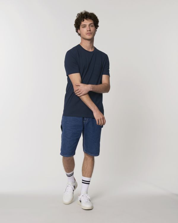 Unisex T-shirt mit Brusttasche . Normale Passform, Rundhalsausschnitt, Short Sleeve, Singlejersey. Eingesetzte Ärmel