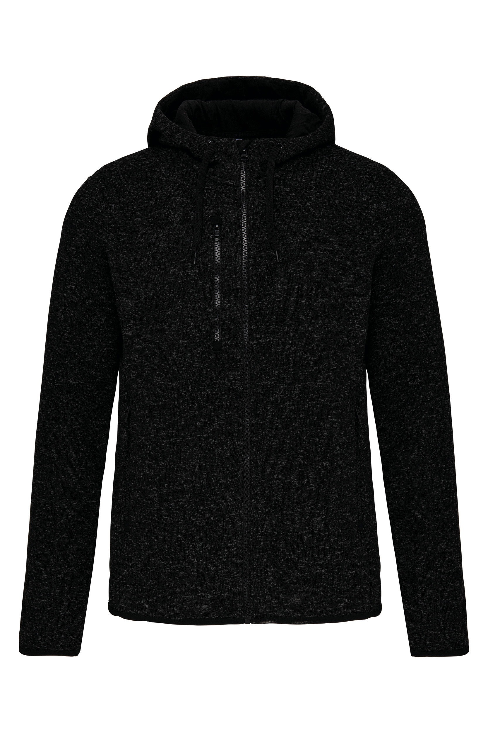 Angerautes Innenfutter aus 100 % Polyester. 2 kontrastfarbene Reißverschlusstaschen vorne und 1 kontrastfarbene Brusttasche mit Reißverschluss. Kontrastfarbenes Jersey-Kapuzenfutter aus 100 % Baumwolle mit flachem, kontrastfarbenem Kordelzug. Ärmelbündchen und Saum mit kontrastfarbenem Schrägband. Überdecknaht an den Einsätzen. Zertifizierte STANDARD 100 by OEKO-TEX®N° CQ1007/8, IFTH. Gebürsteter Polyesterstrick innen für mehr Widerstandsfähigkeit und Komfort. Kapuze mit flachem, farblich abgesetztem Kordelzug.