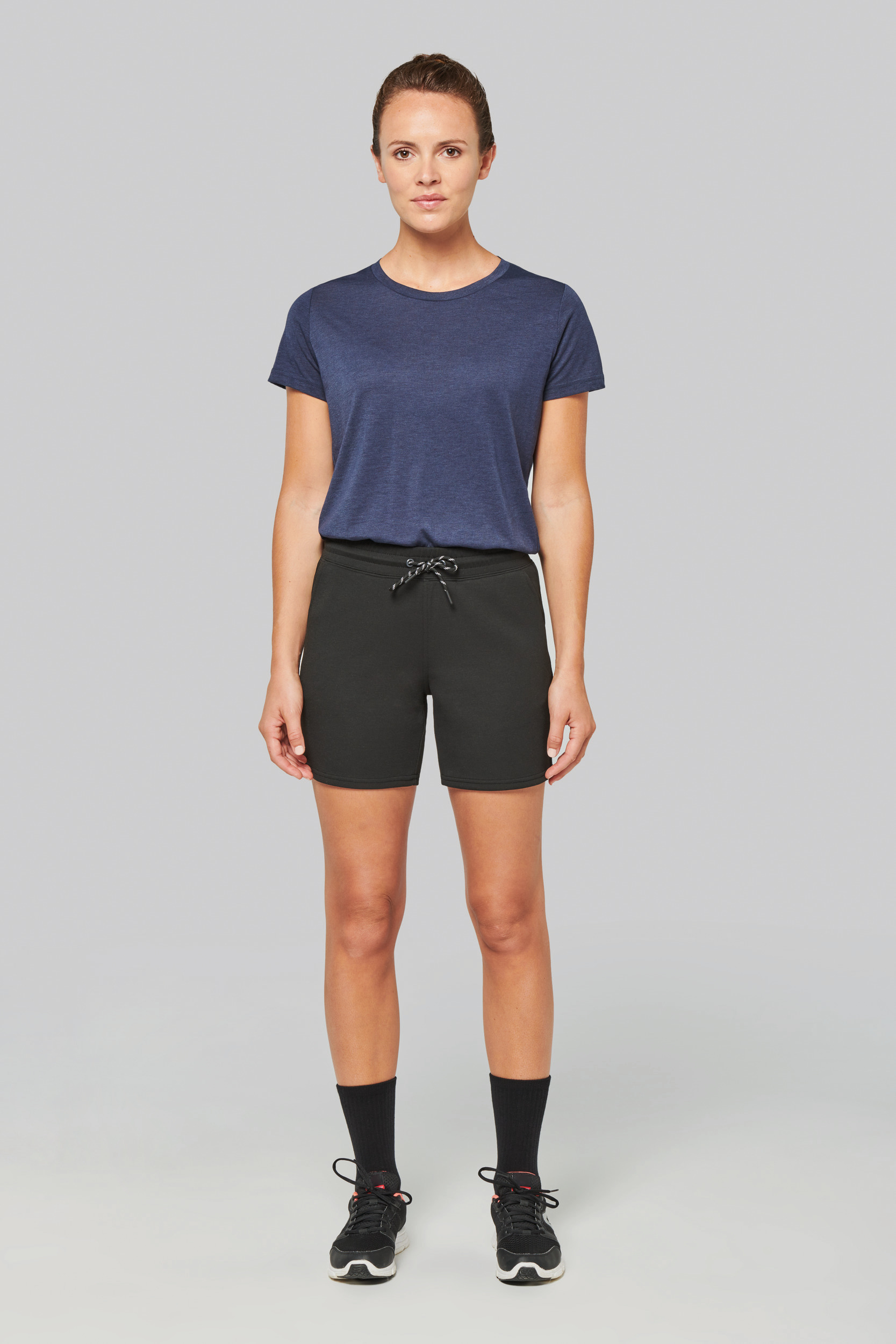 Uni: 94 % Polyester/6 % Elasthan. Melierte Farben: 79 % Polyester/15 % Viskose/6 % Elasthan. Besonders bequemes Material. Elastischer Bund mit zweifarbigem Kordelzug mit Kunststoff-Endkappen und Metallösen. 2 mit Jersey gefütterte Taschen auf der Vorderseite und 1 Gesäßtasche mit kontrastfarbener wärmeverschweißter Naht. Taschenabschlüsse mit elastischem Element in kontrastfarbenem Black für alle Farbtöne und Dark Grey für Black sowie Ash Heather. Doppelnähte am unteren Saum. Markenetikett zum Abreißen. Besonders bequemes Elasthan. Elastischer Bund mit Zugband für besseren Halt. Einfache Veredelung, dank des abtrennbaren Tear-Away-Etiketts.
