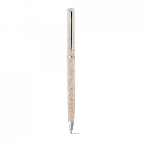 Kugelschreiber aus Weizenstrohfaser und ABS mit schwarzschreibender Mine. Mit Drehmechanismus und Clip aus Metall.ø8 x 126 mm