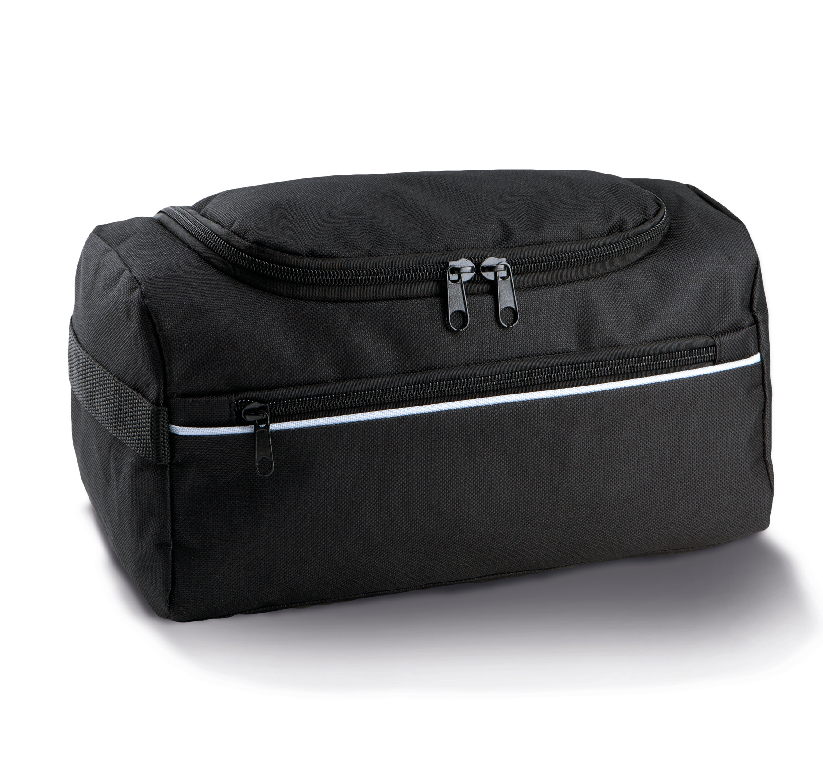 Kosmetiktasche aus 600D Polyester, Haken zum Aufhängen, Innentasche, große Fronttasche, Seitengriff. Öffnung und Klappe oben für schnellen Zugriff. Haken zum Aufhängen der Kosmetiktasche. Seitlicher Griff zum leichten Anheben.