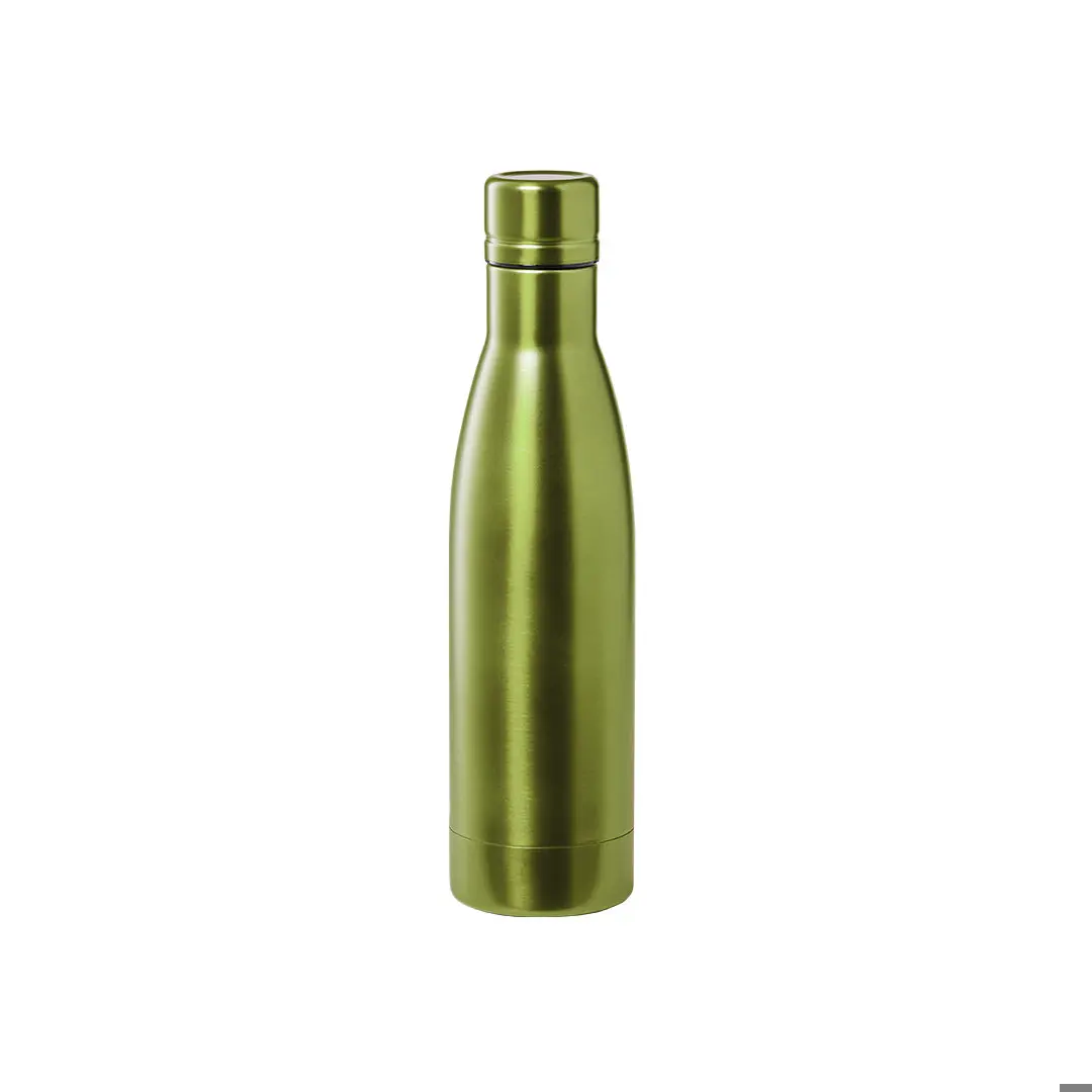 Thermosflasche aus Edelstahl, mit Doppelschicht und Vakuumkupferisolierung. Diese ermöglicht es, die Wärme und Kälte für eine längere Zeit zu halten und dies 12 bzw. 48 Stunden. Mit einem Fassungsvermögen von 500ml und in einer breiten Palette von Metallicfarben erhältlich. Präsentiert in einer attraktiven Designbox.
