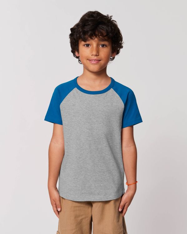Kinder T-Shirt mit abgesetzten Ärmeln. Normale Passform, Rundhalsausschnitt, Short Sleeve, Singlejersey. Raglanärmel