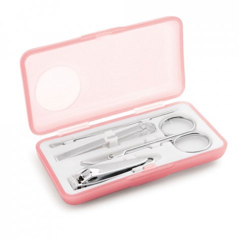 Maniküre-Set (4teilig) bestehend aus einer Nagelschere, Nagelzange, Pinzette und einem Nagelhautschieber. Geliefert in einem Etui.100 x 53 x 20 mm