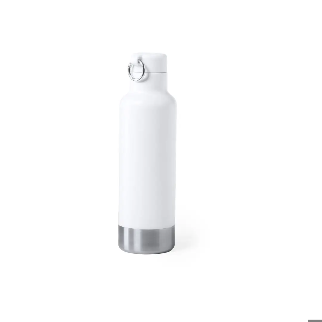 Flasche mit hoher Qualität und großem Fassungsvermögen -750ml-. Aus rostfreiem Stahl, mit farblich passendem Deckel und Tragering. Sockel in eleganter Edelstahlausführung und in den eleganten Farben Weiß und Schwarz erhältlich. Präsentiert in einer attraktiven Design-Box.