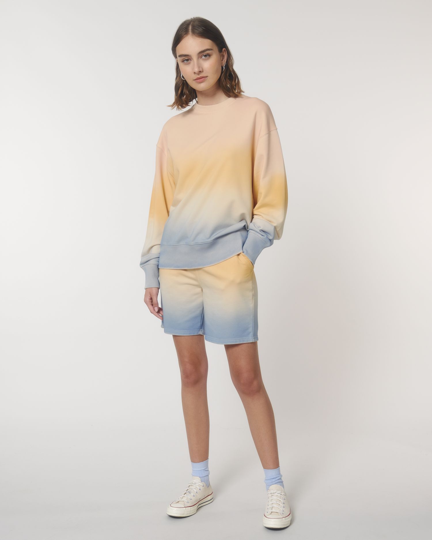 Unisex-Sweatshirt Ombre mit lässiger Passform und Rundhalsausschnitt. Lässige Passform, Rundhalsausschnitt, Long Sleeve, Terry. Eingesetzte Ärmel 2x2-Rippstrick an Halsausschnitt, Ärmelsäumen und am unteren Saum Halsausschnitt im Nacken mit Köperband versehen Abgesetzter Halbmond aus Oberstoff im Nacken Einfache Absteppung am Halsausschnitt Doppelabsteppung an Armloch, Ärmelsaum und unterem Saum Handgefärbtes Produkt, jeder Artikel kann im Aussehen variieren, Farbe kann abfärben, Pflegehinweise beachten Druckempfehlungen beachten
