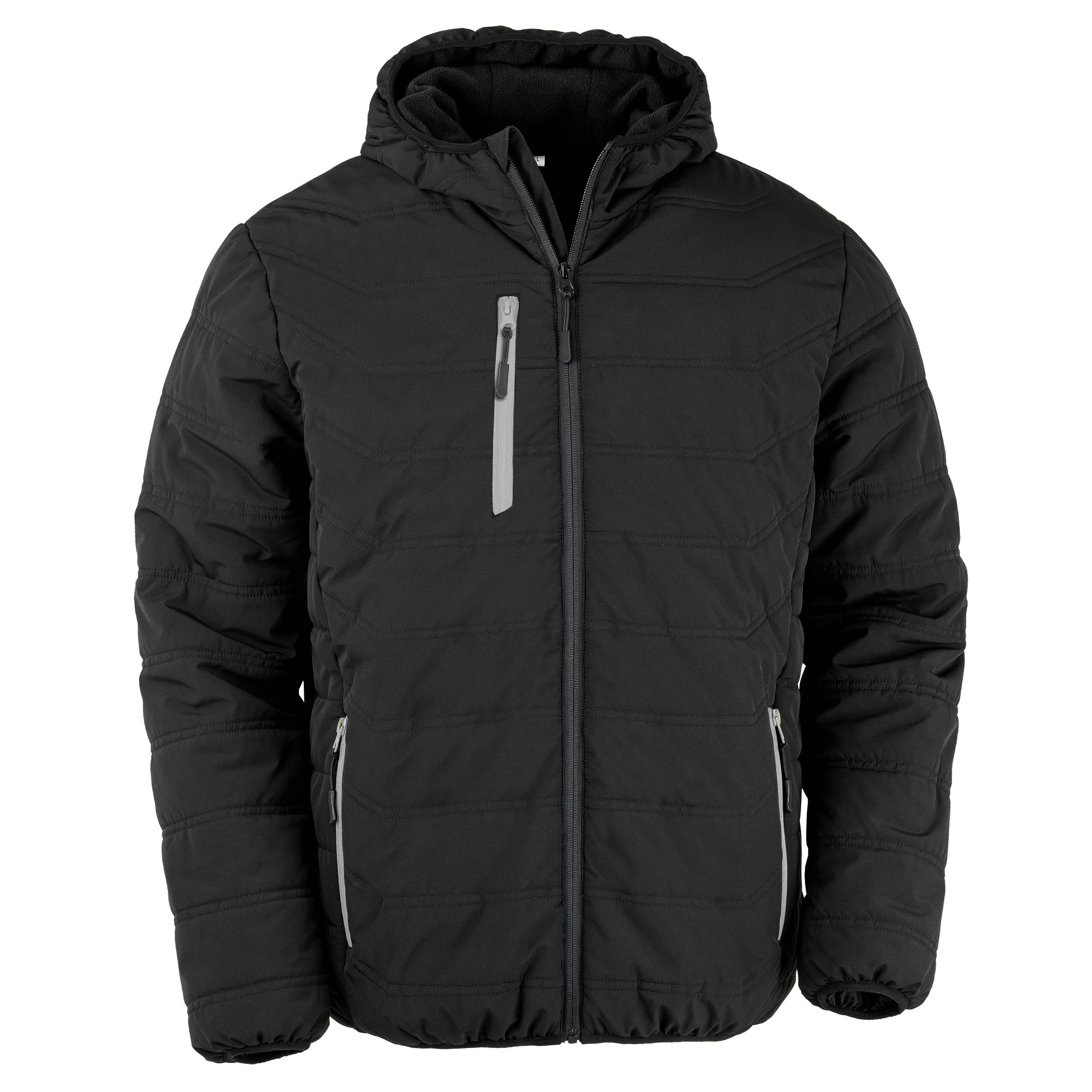 Stoff – Außenseite: 100 % recycelter TOPGREEN-Polyester. Isolierung: 160 g/m² – 100 % recycelter REPREVE®-Polyester. Rumpf aus Steppmaterial mit Fleecefutter. YKK-Reißverschluss mit Kinnschutz. Kontrastfarbene Reißverschlusstaschen. Kapuze mit Fleecefutter. Ärmelbündchen mit eingefassten Säumen. TPU-Membran als Schutz bei schlechtem Wetter. Wasserbeständig, atmungsaktiv und windabweisend. Vollkommen gefüttert, Futter aus Fleecestoff.