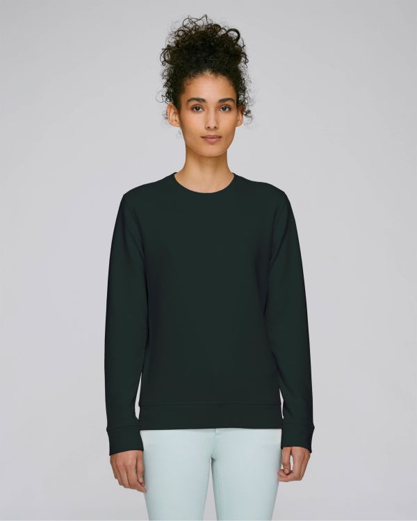 Unisex Schlichtes Rundhals-Sweatshirt. Enganliegende Passform, Rundhalsausschnitt, Long Sleeve, Terry. Eingesetzte Ärmel 1x1 Rippstrick mit einfacher Absteppung Nackenband mit Fischgrätmuster 1x1 Rippstrick an Ärmelenden und unterem Saum Flatlock-Absteppung auf allen Nähten Abgesetzter Halbmond im Nacken
