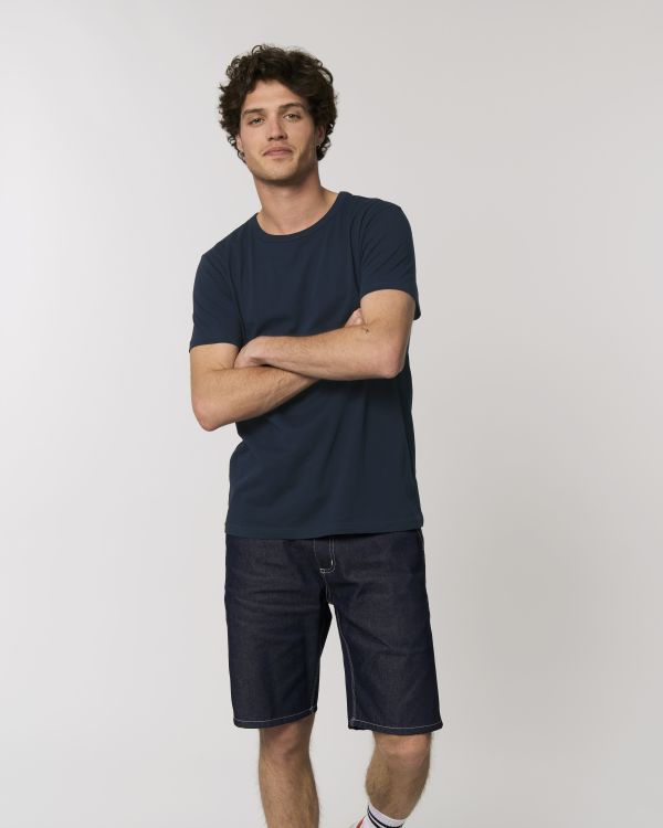 Leichtes Herren T-Shirt. Enganliegende Passform, Rundhalsausschnitt, Short Sleeve, Singlejersey. Eingesetzte Ärmel