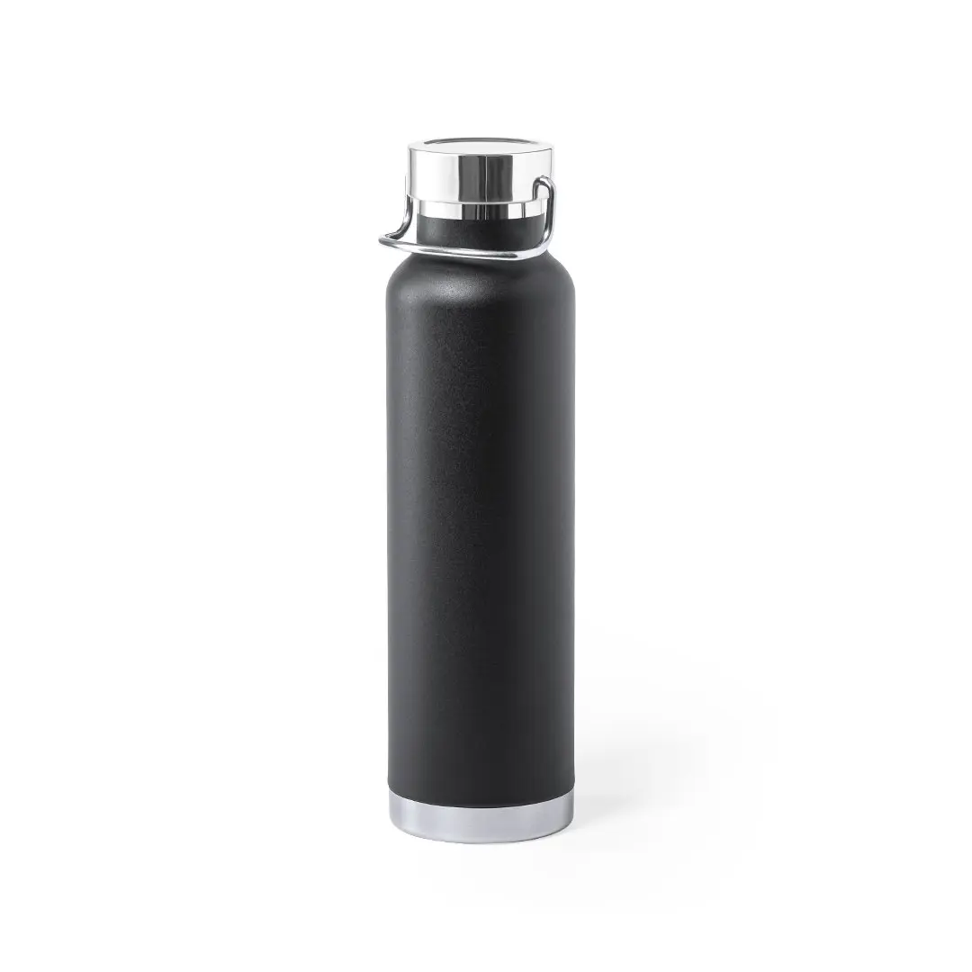 Thermosflasche aus Edelstahl, mit Doppelschicht und Vakuumkupferisolierung. Dieser ermöglicht, die Wärme und Kälte für eine längere Zeit zu halten und dies 12 bzw. 48 Stunden. 650 ml Fassungsvermögen und in einer Vielzahl von Metallicfarben erhältlich. Präsentiert in einer attraktiven Designbox.