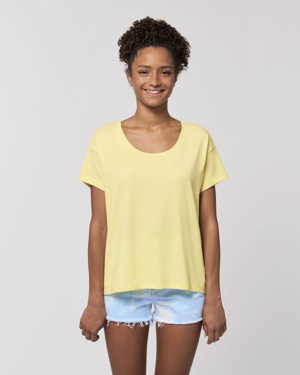 Locker sitzendes Damen Rundhals-T-Shirt. Lässige Passform, Rundhalsausschnitt, Short Sleeve, Singlejersey. Raglanärmel