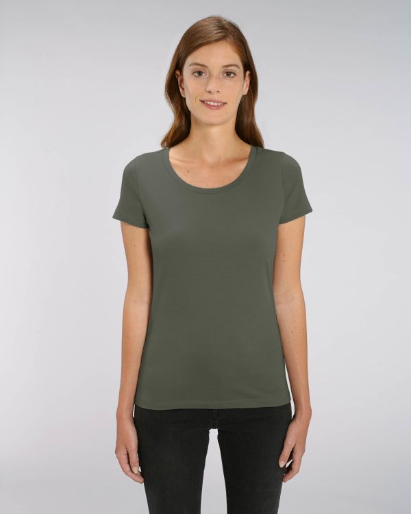 Iconic Damen T-Shirt. Normale Passform, Rundhalsausschnitt, Short Sleeve, Singlejersey. Eingesetzte Ärmel