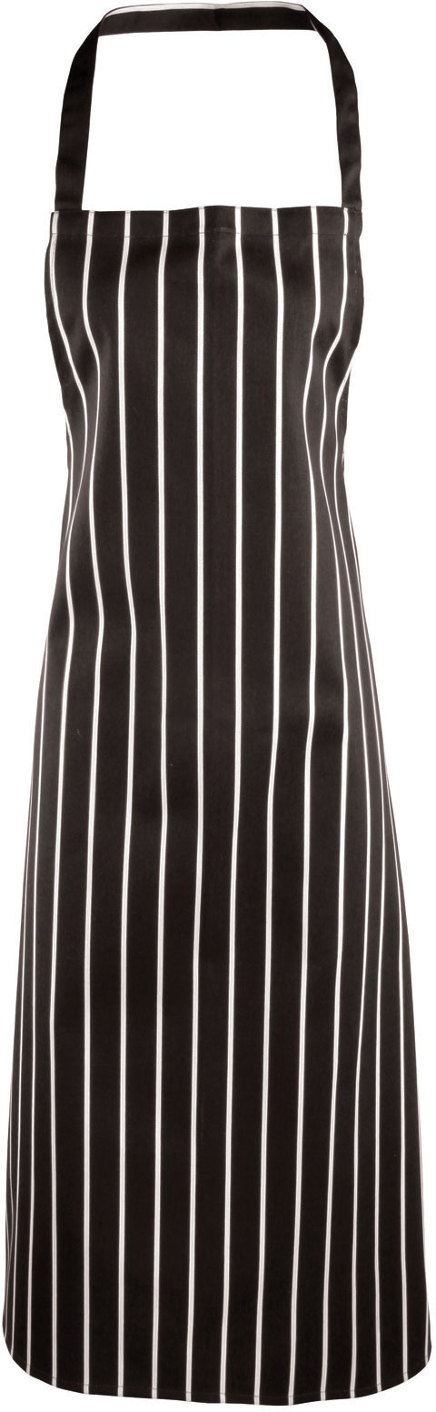 65 % Polyester / 35 % Baumwoll-Twill). Schürze mit vertikalen Streifen im „Fleischerstil". Bänder aus dem gleichen Stoff wie die Schürze. Breite 72 cm. Länge ab der Taille: 71 cm. Gesamtlänge: 101 cm. Länge der Bänder: 90 cm. Oeko-Tex Standard 100 Zertifikat. Qualitativ hochwertiger Stoff für Langlebigkeit.