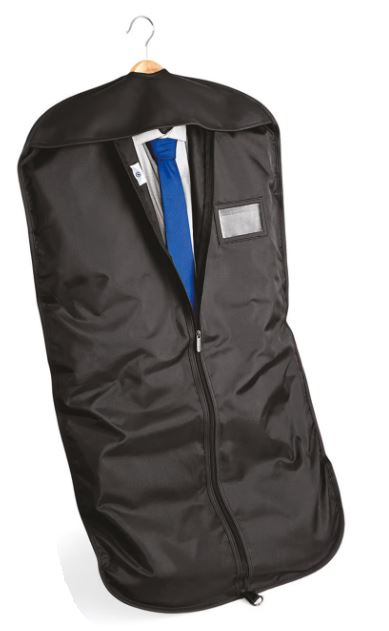 210D Polyester, Hängeschlaufe zum Falten. Klarsichtfenster. Durchgehender Reißverschluss. Aus leichtem, widerstandsfähigem Canvas. Möglichkeit einen Anzug oder drei Hemden zu transportieren.